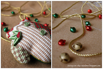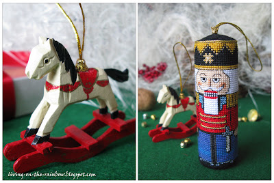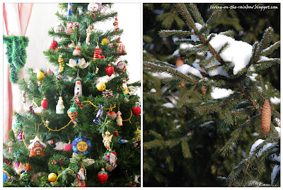 Покажу вам кусочек ёлочки: на ней далеко не все наши рукодельные игрушки, но Новый Год мы празднуем в двух домах и двух городах, поэтому часть игрушечек осталась висеть на другой :)