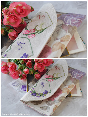 I made this envelope for keeping my family's love letters and postcards :) Just in time for the St.Valentine's! It is a bit vintage, romantic, rolling in flowers, and with our embroidered initials on the top.