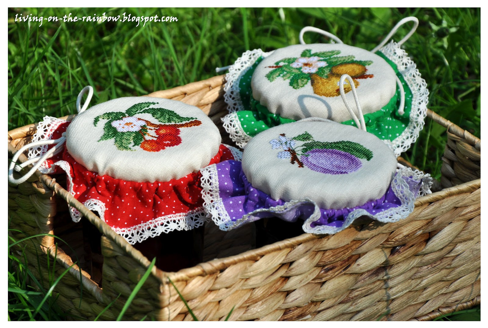 This is a brooch with a cross-stitched lilac by Veronique Enginger. It is just 5cm and 3.6cm in the widest parts. Stitched on 40ct linen.