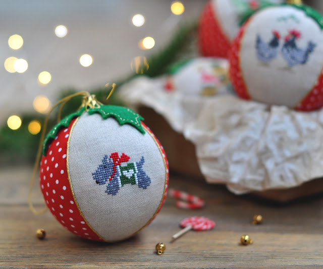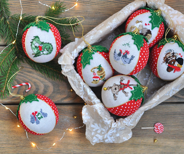 По таким шарикам я недавно выпустила МК, правда, схема вышивки там не символы года, а машинка с елкой. Найти его можно здесь. МК на английском и русском языках :)